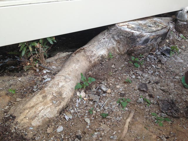 The most obvious problem lies in the potential termite or white ant nest problem. The tree stump if nothing else will require constant chemical treatment to make sure termites don’t show up under the building.